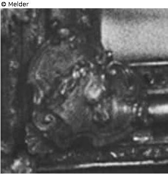 2 corner cartouches of a mirror with horse's head