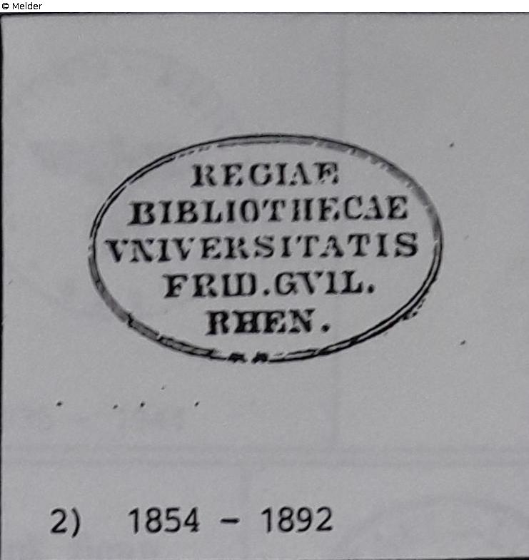 Antiquariat Esenwein, UB Bonn Acc. 1873 K 129); Relocation 1942/43; lost after World War II