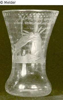Search Request | Object report Becher aus dem Tabakskollegium Lost Art-ID406091 Previous Next TitleBecher aus dem TabakskollegiumObject typeVesselGroup of reported objectsCrafts and other folk artsMaterial / TechniqueGlassDescription mit der Darstellung zweier kämpfender Hasen (Gundling und Fassmann); Inschrift: „Diss edle Bruder Paar, schont weder Haut noch Haar." Read more Read less Provenance Hohenzollernmuseum, Monbijou Palace, Berlin; lost in 1945. Read more Read less Published since2008 Contact Michaela BlankartPositionGeneralverwaltungPhone+49 (0) 30 803 1138E-Mailberlin@preussen.de Contact Stefan SchimmelPositionKunstsammlungenPhone+49 (0) 30 803 1138E-Mailschimmel@preussen.de