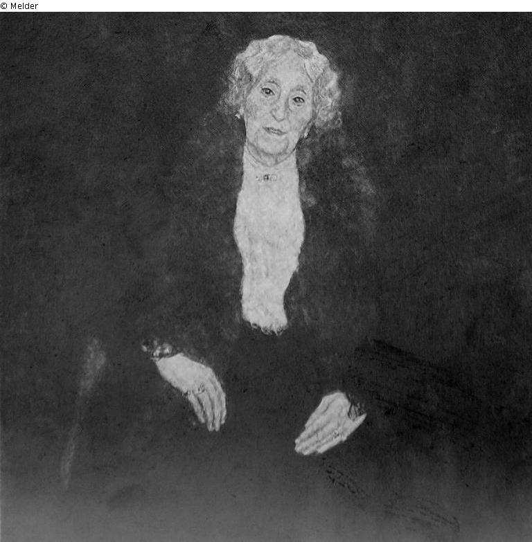 after Weidinger, No. 244: Charlotte Pulitzer, date: 1917, size: 98 x 98 cm, technique: oil on canvas, title: M. r.: "GUSTAV / KLIMT", possession unknown, provenance: August and Serena Lederer, Vienna (from the artist erw.; until 1938)
