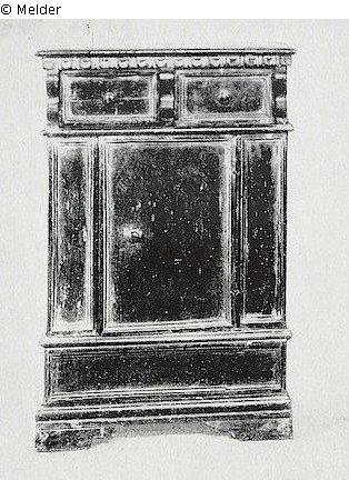Search Request | Object report Cupboard Lost Art-ID528880 Previous Next Artist / Creator Unknown (Italienisch) TitleCupboard Dating1501/1600Object typeFurnitureGroup of reported objectsCrafts and other folk artsMaterial / TechniqueWood (Walnut)Description With profiled fillings, two drawers, in the centre a door. Read more Read less Provenance Mayer-Fuld, Lucie - Berlin; Auction by Walter Achenbach, Berlin, 10. July 1940, Lot No. 155; picture plate 13 Read more Read less Published since02.09.2015 Contact Von Trott zu Solz LammekPositionRechtsanwälte NotarPhone+49 (0) 30 59 00 33 00E-Mailkanzlei@vontrott-lammek.de