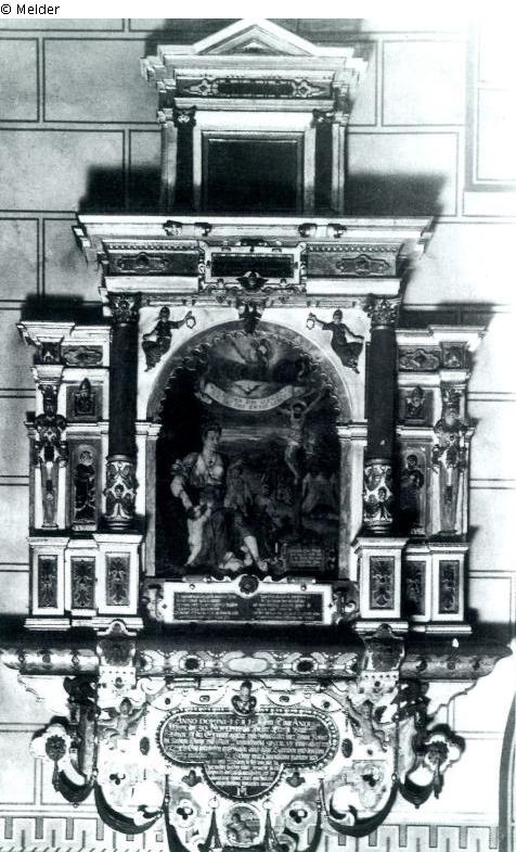 St. Martini, Braunschweig; gesamtes Epitaph nach 1944 wahrscheinlich abgebaut und sichergestellt in einem Lagerraum des Herzog Anton Ulrich-Museums in Braunschweig; danach Werkstatt des Restaurators Herzig, Burg Dankwarderode; 1976 Teile des Epitaphs zurück in die Martinikirche (westliche Wand des nördlichen Seitenflügels) und dort 1999/2000 restauriert; Verbleib des Gemäldes unbekannt (heute als Fotografie ersetzt)