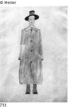 Search Request | Object report Fashion Design: Raincoat Lost Art-ID475068 Previous Next Artist / Creator Schiele, Egon Birth 1890.06.12, Tulln Death 1918.10.31, Wien Place of activityWien TitleFashion Design: RaincoatObject typeDrawingGroup of reported objectsGraphicMaterial / TechniquePencil ; Watercolour / drawn ; watercoloured Height 45.00 cm Width 31.60 cm Inventory number731 (WV Kallir)Description study of a male figure, verso;Exhibitions: Albertina, Vienna, 1948, no. 120; Venice, 1982, no. 5 ; Vienna, 1984, no. 22, ill.; Rome, 1984, no. 51, ill.;Literature: Leopold, 1972, p. 497; See: D. 728 Read more Read less Provenance Karl Mayländer; Private collection Read more Read less Published since24.06.2013 Contact Israelitische Kultusgemeinde WienPositionAbteilung für RestitutionsangelegenheitenE-Mailrestitution@ikg-wien.at