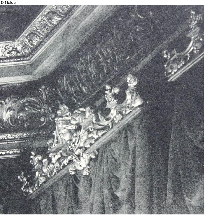 Acquired in 1868 and placed in the Red Silk Room; As part of the settlement agreement between the Free State of Saxony and the former royal house in 1924, the curtain boxes were transferred to the Free State of Saxony as room inventory; Due to the war, they were removed to a relocation site (Rothschönberg, Zottewitz or Schönfeld). The further whereabouts of the curtain boxes are unknown. It is assumed that they were lost in connection with the events of the Second World War.