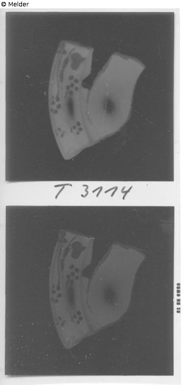Half of a miniature beaker with moulded lip, handle missing, brown