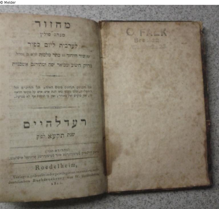with ex libris "C. Falk / Breslau / Wallstraße 23; used during the High Holidays of Jewish New Year (Rosh Hashana) and the Day of Atonement (Yom Kippur)