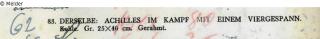 Collection Eduard Fuchs until 1933; 25.10.1933 confiscation by the Gestapo; 16. and 17.06.1937 auction Rudolph Lepke Catalogue 2114, No. 83: "Achilles im Kampf mit einem Viergespann. Kohle, Größe 25 x 40 cm. Gerahmt."; bought by the Slevogt collector Franz Josef Kohl-Weigand for 62,- RM; since 1937 Kohl-Weigand Collection, St. Ingbert; since 1980 Saarlandmuseum Saarbrücken, Graphische Sammlung (KW 59 Z) - restitution negotiations have been initiated