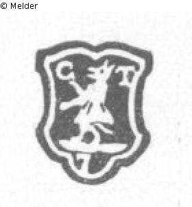 Pewter mug of the fishermen's guild, on the lid two crossed fishes. Hallmarked with Dresden city mark and the mark of the pewterer George Trainer.