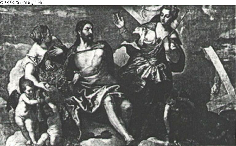 (former) administration: Berlin; (public) collection; Staatliche Museen; department: Gemäldegalerie; inv. no. 303; type of accession: purchase; date of accession: 1842; place of removal: Berlin; Friedrichshain; Flak tower Friedrichshain; period of ownership: until 1945; type of accession: removal from storage; date of accession: 1941/1942; previous owner: Brescia; (private) collection: Lechi, Luigi (Count); period of ownership: until 1842 [Acquired in 1842 from the collection of Count Lecchi, Brescia