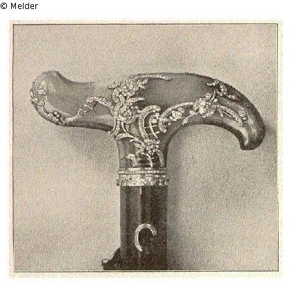 spanisches Rohr; gelangte nach dem Tod Friedrichs des Großen an seine Witwe, die Königin Elisabeth-Christine, die ihn ihrem Neffen, dem König Friedrich-Wilhelm III vermachte