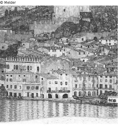 after Weidinger, No 216: Malcesine at Lake Garda, dated: 1913, foramt: 110 x 110 cm, technique: oil on canvas, Designation: bottom right: "GU5TAV / KLIMT", Provenance: Viktor Zuckerkandl, Vienna; Viktor and Paula Zuckerkandl estate (1928); Fritz Zuckerkandl, Vienna; August and Serena Lederer, Vienna (before 1938); Erich Lederer, Geneva;