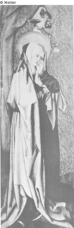 Wing of an altar, Mary leaning her weeping cheek against her left hand