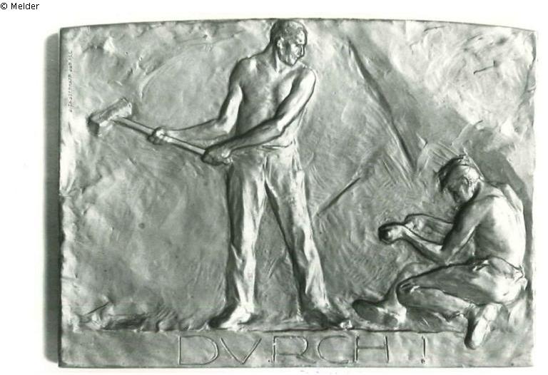 Wocheiner tunnel construction. At the bottom, the word "Durch!"