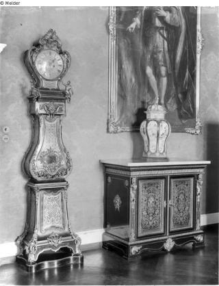 From the inheritance of Petronella Melusine Countess of Chesterfield; by inheritance into the Wolfsburg branch of the von der Schulenburg family; by further inheritance remained in the von der Schulenburg-Wolfsburg family; before 1942 Wolfsburg Castle (until 1932 Gardelegen County, Province of Saxony; then Gifhorn County, Province of Hanover; today City of Wolfsburg); then moved to the newly built Neumühle Castle near Tangeln, municipality of Beetzendorf in the Altmark County of Salzwedel, location there: "Hallway, main floor". Last documented in Wolfsburg Castle by measuring pictures; left behind in 1945 when leaving Neumühle Castle in flight before it was taken over by the Red Army; Neumühle Castle was assigned to the Soviet occupation zone and expropriated; whereabouts unknown.