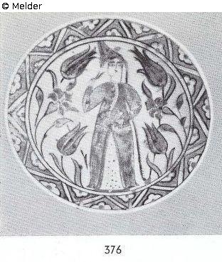 deep, painted in blue, green and brick red, with figure