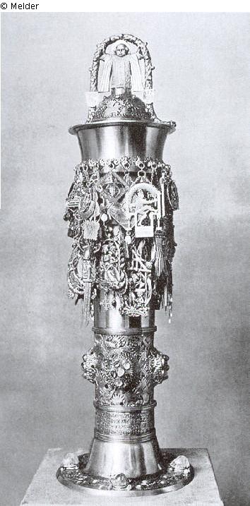 Search Request | Object report Pokal der künsterlischen und gewerblichen Vereine Münchens Lost Art-ID405979 Previous Next TitlePokal der künsterlischen und gewerblichen Vereine Münchens Dating1906Object typeCrafts and other folk artsGroup of reported objectsCrafts and other folk artsMaterial / TechniqueMetal (Silver) / gildedInventory number7786Description Kaiser Wilhelm II. bei der Grundsteinlegung des Deutschen Museums in München im November 1906 überreicht Read more Read less Provenance Hohenzollernmuseum, Monbijou Palace, Berlin; lost in 1945. Read more Read less Published since2008 Contact Michaela BlankartPositionGeneralverwaltungPhone+49 (0) 30 803 1138E-Mailberlin@preussen.de Contact Stefan SchimmelPositionKunstsammlungenPhone+49 (0) 30 803 1138E-Mailschimmel@preussen.de