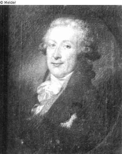 Bust-length portrait of a noble in a short wig, wearing a frock coat with a white jabot and a star on his chest. Turned three quarter to the left. Painted in oval let into a frame.
