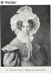 Portrait of an elderly woman with a white lace cap. Inscribed on the right: E. Gärtner 1832.
