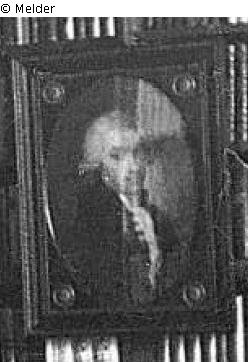 with wig, oval, framed in a rectangle