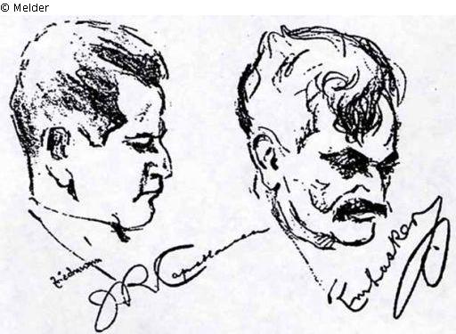 Portraits José R. Capablanca & Dr. Emanuel Lasker am Schachbrett