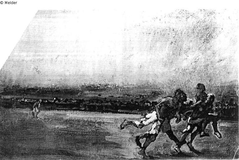 Eduard Fuchs Collection until 1933; 25.10.1933 confiscation by the Gestapo; auction house Rudolph Lepke, Berlin, Catalogue 2116, p. 13. On 16 and 17.06.1937 the painting was sold as No. 94: "Max Slevogt. Wettläufer in der Arena. Pappe Gr. 39 x 61 cm. Alter Goldrahmen" sold by auction; bought for RM 210 (estimated price: RM 150) from the Düsseldorf art dealer Hans Bammann; 04.12.1993 auction Lempertz, Cologne, no. 487; whereabouts unknown