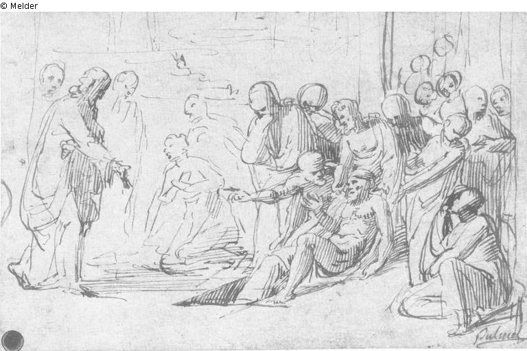 The Raising of Lazarus (recto); Study for putto (fragments) (recto)