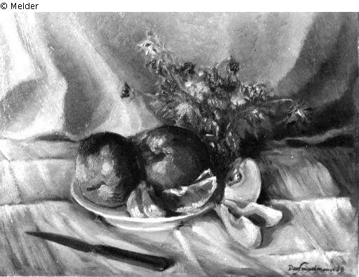 Friedmann, who fled from Berlin to Prague on 27 December 1938 and continued to work as an artist in Prague, was deported to Lodz with his family on 16 October 1941 and his possessions were confiscated beforehand. These included works of art from before 1939, as he was able to bring some works from Berlin to Prague at the beginning of 1939.