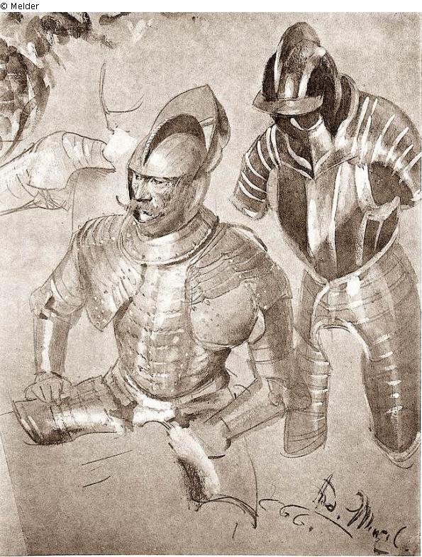 Studie eines Ritters in Reitstellung und einer Rüstung