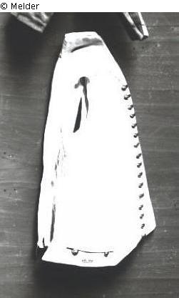 Gelbe Uniformweste. Rücken und Futter aus weißem Leinen. Am Rücken zwei Paar Schnüre. Vorn zwei Taschen mit Klappen und vergoldeten Knöpfen. 16 Knöpfe zum Zuknöpfen. Vermutlich vom König getragen. Weste zur Uniform des I. Bataillon Leibgarde