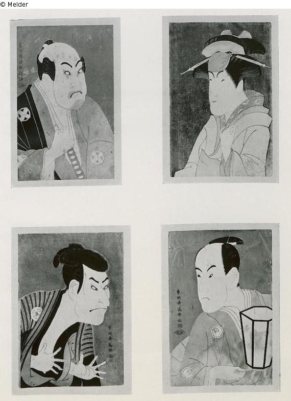 1.) ein zorniger älterer Mann mit Schwert, en face nach rechts, 2.) Kurtisane, en face nach links, 3.) ein erregt gestikulierender, junger Mann, en face nach rechts, 4.) Diener mit der Laterne, en face nach links. R. R. unter Glas.