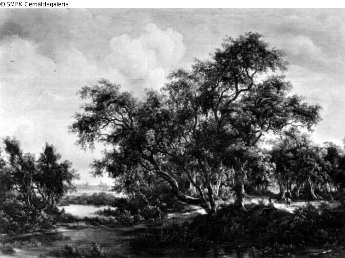 Panel painting: depiction: Forest; Signature: Lower right: m hobbema; Dimensions: 59 x 82 cm