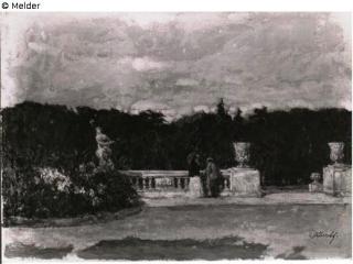 Found-Object Report Park terrace with flower bed and two persons / Schön Artist / Creator Albrecht, Carl (1862) Object type Painting Material / TechniqueCardboard / painted ; pastelLost Art-ID574827