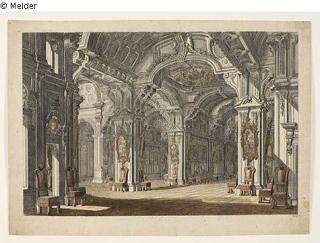 Found-Object Report Stage decoration for a baroque hall Artist / Creator Bibiena, Giuseppe Galli Artist / Creator Pfeffel, Johann Andreas (der Ältere) (?) Artist / Creator Pfeffel, Johann Andreas (der Jüngere) (?) Object type Print Material / TechniquePaper / printed (copper engraving) colouredLost Art-ID617522
