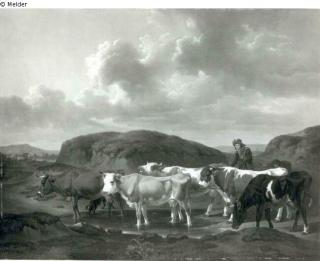 Found-Object Report Herdsman with cattle walking through a brook Artist / Creator Dallinger von Dalling, Alexander Johann Object type Painting Material / TechniqueOil ; Panel / paintedLost Art-ID219305