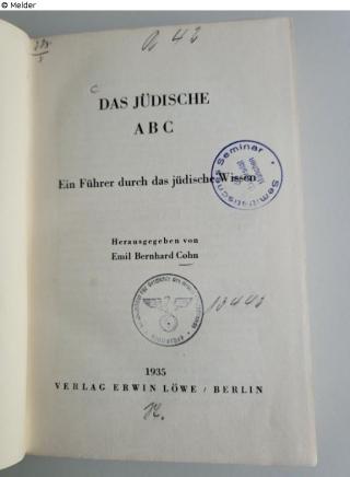 Found-Object Report Das jüdische ABC : Ein Führer durch das jüdische Wissen Editor Cohn, Bernhard Emil Publisher Löwe Object type Library objects Lost Art-ID625480