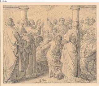Found-Object Report The outpouring of the Holy Spirit Artist / Creator Schnorr von Carolsfeld, Julius Object type Drawing Material / TechniquePaper ; Colour black ; Pencil / drawn (pen-and-ink drawing)Lost Art-ID599822