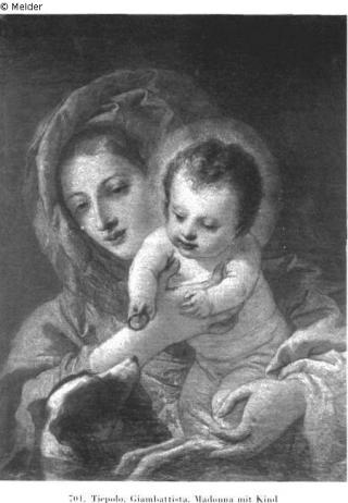 Search Request Maria mit Kind Artist / Creator Tiepolo, Giovanni Domenico (damals Tiepolo, Giovanni Battista zugeschrieben) Object type Painting Material / TechniqueOil ; Canvas / paintedLost Art-ID437956