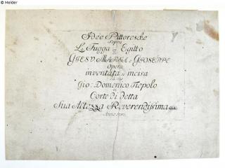 Found-Object Report Title page to the episode The Flight to Egypt Artist / Creator Tiepolo, Giovanni Domenico Object type Print Material / TechniquePaper / printed (etching)Lost Art-ID579216