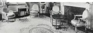 Wood (Walnut) ; Leather ; Metal (Brass) / upholstered