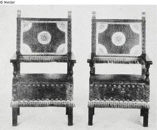 Fabric (Velvet) / carved ; gilded ; painted