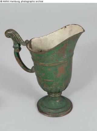 Found-Object Report Pitchder probably for cleansing hands Artist / Creator Unknown Object type Vessel Material / TechniqueMetal (Brass) ; Colour / repoussé ; cast ; paintedLost Art-ID626354