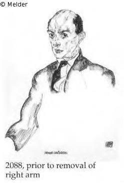 restituted Search Request Self-portrait with striped protective sleeves Artist / Creator Schiele, Egon Object type Drawing Material / TechniquePencil ; Opaque colour ; Paper / drawnLost Art-ID475076