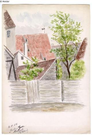 Found-Object Report Gerber-Gasse, Hintergeb. (im Westen) Artist / Creator Drescher, Heinrich Georg Object type Watercolour Material / TechniqueWatercolour ; Paper / watercolouredLost Art-ID606815