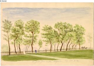 Found-Object Report Die grüne Gasse in den Kohlgärten (The green alley in the cabbage gardens) Artist / Creator Drescher, Heinrich Georg Object type Watercolour Material / TechniqueWatercolour ; Paper / watercolouredLost Art-ID606816