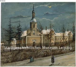 restituted Found-Object Report Connewitz Church - a late baroque hall church Artist / Creator Siebicke, Friedrich August Object type Watercolour Material / TechniqueWatercolour ; Paper / painted ; watercolouredLost Art-ID596026
