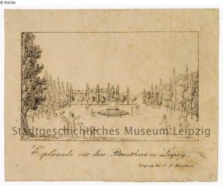 restituted Found-Object Report Esplanade vor dem Petersthore zu Leipzig (Esplanade in front of the Petersthore in Leipzig) Artist / Creator Unknown Object type Print Material / TechniquePrinting ink ; Paper / printed (copper engraving)Lost Art-ID596028