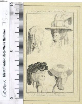 Found-Object Report Women's hairstyles from Leipzig and Dresden Artist / Creator Dornheim, Johann Carl Object type Print Material / TechniquePaper / printed (copper engraving) [?]Lost Art-ID622905