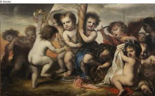 Found-Object Report Group of putti with symbols / Round of putti with symbols of peace / Procession of putti with symbols Artist / Creator Ovens, Jürgen Object type Painting Material / TechniqueOil ; Canvas / paintedLost Art-ID585304
