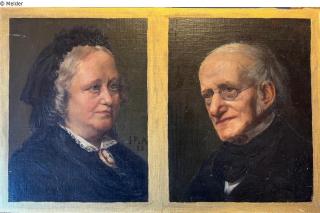Search Request Portrait of Emma Isler née Meyer 03.11.1816 and Meyer Isler Artist / Creator Boor, Julie de (on the left, probably) Artist / Creator Unknown (on the right) Object type Painting Lost Art-ID601998