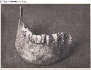 Search Request Lower jaw with tooth repair Artist / Creator Unknown Object type Menschliche Überreste Material / TechniqueBone ; Metal (Gold wire)Lost Art-ID614003